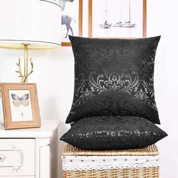 CaliTime Pack of 2 Throw Pillow Covers Cases for Couch Sofa Home Decoration Vintage Damask Floral Shining & Dull Contrast 18 X 18 Inches Black