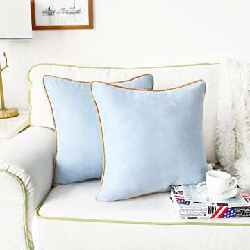 CaliTime Throw Pillow Covers Pack of 2 Super Soft Faux Suede Gold Piping Edge Accent Cushion Cases for Couch Bed Sofa Farmhouse Decorative 18 X 18 Inches Light Blue