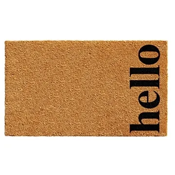 Show moreWelcome style and functionality into your home with the Calloway Mills Vertical Hello Doormat. Designed with practicality in mind, this oversized doormat measures an impressive 24” x 36”, making it perfect for larger entryways while providing ample coverage to protect your floors. Crafted from high-quality coir, it not only works hard to scrape shoes clean but also adds a touch of elegance with its natural and black design. The cheerful ‘hello’ greeting is strategically placed to create a warm and inviting atmosphere for anyone who crosses your threshold. It's an ideal addition to your home decor that effortlessly combines aesthetics and utility.
