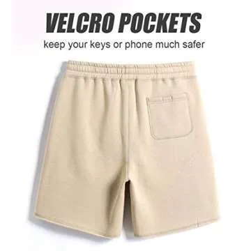 caloleyng Mens Cotton 8" Long Casual Lounge Fleece Shorts Pockets Jogger Athletic Workout Gym Sweat Shorts Khaki