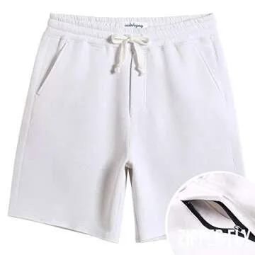 caloleyng Mens Cotton 8" Long Casual Lounge Fleece Shorts Pockets Jogger Athletic Workout Gym Sweat Shorts White