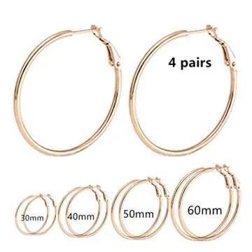 Show moreThe Calors Vitton 4 Pairs Stainless Steel Round Hoop Earrings are the perfect blend of style, quality, and comfort, designed to elevate your jewelry collection. These exquisite hoop earrings come in a versatile set of four pairs with diameters measuring 30mm, 40mm, 50mm, and 60mm, providing you with ample choices to suit various occasions and outfits. Crafted from high-quality 316L Stainless Steel, they ensure durability and a hypoallergenic experience for even the most sensitive skin types. Say goodbye to the discomfort often associated with other earrings!