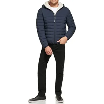 Calvin Klein Men's Hooded Down Jacket - Quilted & Sherpa Lined Cozy Outerwear