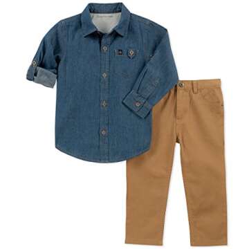 Calvin Klein Toddler Boy's 2 Pieces Shirt Pant Set Pants, Blue/Khaki, 4T