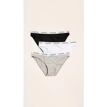 Show moreDiscover the perfect combination of chic design and unparalleled comfort with the Calvin Klein Women's 3 Pack Carousel Bikini Panty. These bikini-style undies are crafted from premium cotton, ensuring an incredibly soft touch against your skin while providing ample breathability. Whether you’re heading to the office or hitting the gym, these stylish panties are designed to keep you feeling fantastic all day long. The vibrant color trio of black, white, and grey allows for seamless pairing with any outfit, making these undies a versatile essential in your lingerie drawer.