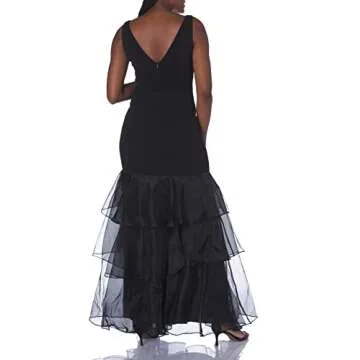 Show moreThe Calvin Klein Women's Sleeveless V-Neck Gown with Tiered Organza is the pinnacle of elegance and comfort, perfect for those special occasions where you want to leave a lasting impression. Crafted with a flattering fit that enhances your silhouette, this stunning black gown features a sophisticated tiered organza detail that drapes beautifully, making it a standout piece in your wardrobe. With its convenient zipper closure, getting dressed is a breeze, allowing you to focus on looking and feeling your best. Whether you're attending a formal event or a summer wedding, this gown is designed to make you shine.