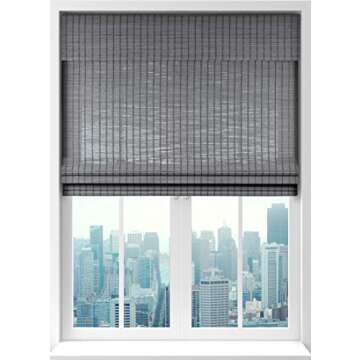 Calyx Interiors Cordless Seaside Gray Bamboo Roman Shades Blinds - Size: 20"W x 60"H