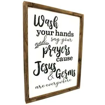 Show more Transform your bathroom experience with the CAM N HONEY Funny Rustic Wooden Bathroom Wall Decor, a delightful 12x16 inches wood-framed wall hanging that encapsulates humor and warmth. Crafted from exceptionally durable MDF board paired with fir wood frames, this wall decor not only resists damage from temperature fluctuations but also boasts a rustic farmhouse charm that will enrich any bathroom setting. Its striking design showcases a playful reminder about the importance of cleanliness, making it a perfect addition to family bathrooms or guest restrooms alike.