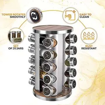 CAM2 Rotating Spice Rack with Free Spice Jar Resend for 5 Years, Spice rack organizer for countertop, Seasoning organizer stainless steel, For Kitchen Cabinet Organizer(Wood)