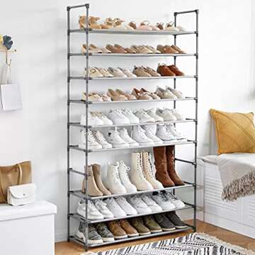 Camabel 10 Tiers Shoe Rack Capacity 130lbs for 60 Pairs Stackable Narrow Expandable Storage Organizer Cabinet Tower Shelf Space Saving Assembly Hold High Heeled Shoes Gray BG360