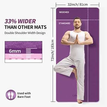 - Extra Long & Extra Wide: At **72L x 32W**, this mat accommodates both tall individuals and those seeking more space for their practice.