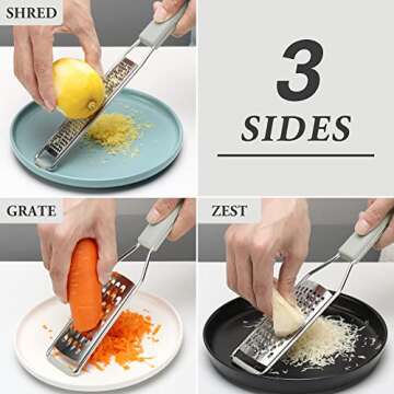 Cambom Lemon Zester Grater Three-piece Suit - Heavy Duty Kitchen Tool for Parmesan Cheese, Ginger, Garlic, Nutmeg, Chocolate, Vegetables,Fruits,Stainless Steel Grater Dishwasher Safe Clear