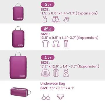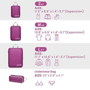 Cambond Compression Packing Cubes for Suitcases - 5 Set Packing Cubes for Travel Expandable Luggage Packing Organizers with Underwear Bag, Purple