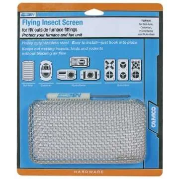 Show moreIntroducing the Camco 42140 Flying Insect Screen! This essential outdoor accessory is designed specifically for campers, providing effective protection for your furnace vents. Measuring 7-1/2 x 4-1/8 x 1-5/16 inches, it fits a variety of popular furnace models including Coleman, Suburban, Sol-Aire, and Hydroflame. With its heavy-duty stainless steel mesh cover, this screen is built to withstand the elements while preventing unwanted flying insects from nesting in your furnace. The Camco 42140 not only enhances the longevity of your furnace but also improves your overall camping experience by ensuring a clean and safe environment. Say goodbye to the tedious task of cleaning out insect debris and hello to hassle-free camping adventures!