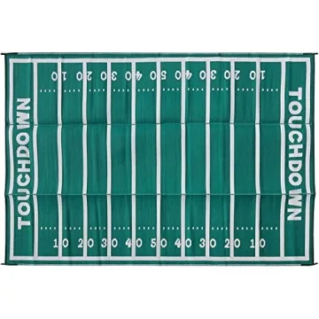 Show moreIntroducing the Camco American Football Field Design Large Outdoor/Patio Rug—your new essential companion for outdoor adventures! With its generous dimensions of 9 feet by 12 feet, this multifunctional rug is designed to elevate your tailgating, camping, hiking, and RV experience. Crafted from lightweight, breathable materials, it promises durability without compromising convenience. Plus, its clever reversible design allows you to switch things up while keeping your outdoor space stylish and inviting.