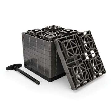 10 inter locking blocks stack to the desired height for customizable leveling