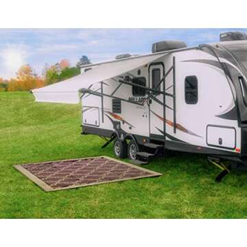 Camco Large Reversible Outdoor Patio Mat - Easy to Clean, Perfect for Picnics, Cookouts, Camping, and The Beach (9' x 12', Brown Lattice Design) (42857)