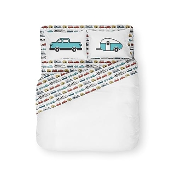 Transform your RV bedroom into a cozy haven with the Camco Life is Better at The Campsite Camper/RV Queen Sized Bed Sheet Set. This delightful four-piece set features an adorable travel trailer print against a crisp white background, perfectly capturing the spirit of adventure and exploration. Crafted from soft, machine washable polyester, these sheets are not only comfortable but also designed to withstand the trials of life on the road. Measuring for a short queen-sized bed, each set includes a fitted sheet,...