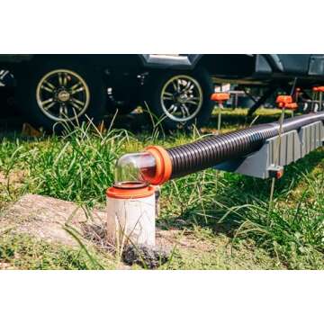 Camco RhinoFLEX 20 Foot RV Camper Sewer Hose Kit, Includes 10 Inch Sewer Hoses, Transparent 4 in 1 Adapter, and 4 Storage Caps, Black/Orange