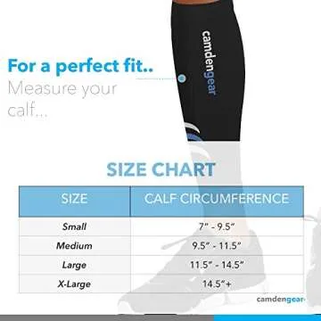 The Camden Gear compression sleeves are available in various sizes to accommodate calf measurements from 9" to over 16". Whether you are a seasoned athlete or just starting out, finding your perfect fit is simple—just refer to our sizing guide.