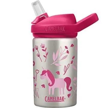 CamelBak eddy+ Kids Water Bottle with Straw, Single Wall Stainless Steel - Leak-Proof when Closed, 14oz, Unicorn & Blooms
