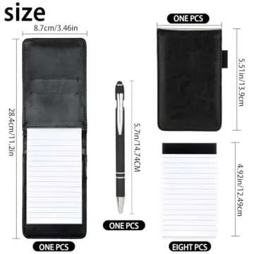 Show moreIntroducing a perfect companion for your busy life—a versatile 10-piece Small Notepad Holder set that combines functionality with style. This essential set includes a 3.4 x 5.4 inch Pocket Notepad Holder, a 50-sheet 3 x 5 Inch notepad, a retractable metal pen, and 8 additional 30-sheet notepads. Whether you are a student, a business executive, or someone who loves jotting down thoughts on-the-go, this notepad holder will undoubtedly meet your daily writing needs.