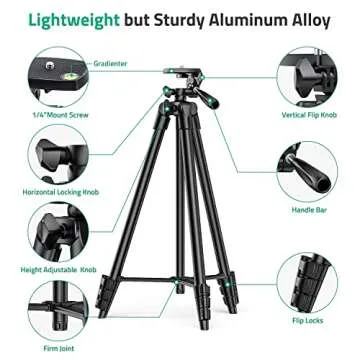 Camera Tripod, 55" Phone Tripod Stand with Remote Shutter, Carry Bag for Travel Record/TIK Tok/Photography/Live Stream/YouTube Video, Compatible DSLR and Smartphone