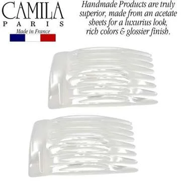 Camila Paris CP3010 French Hair Side Comb Handmade Small Pearl French Twist Hair Combs Decorative, Strong Hold Hair Clips for Women Bun Chignon Up-Do Styling Girls Hair Accessories, Made in France