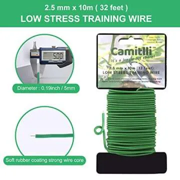 Show moreIntroducing the CAMITLLI Reusable Garden Plant Wire Twist Tie, your ultimate solution for supporting climbing plants, tomatoes, and more! This heavy-duty, soft wire tie is both user-friendly and versatile, designed with a soft rubber coating that allows for convenient cutting and easy manipulation. With a generous length of 65.8 feet total across two ties, this product ensures that you have enough material to fulfill your gardening needs while blending seamlessly into your natural surroundings with its green color.