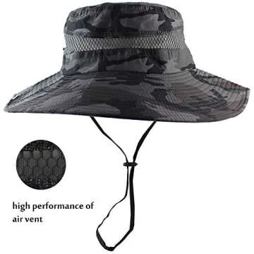 CAMOLAND Summer Fishing Sun Boonie Hat Camouflage Outdoor UV Protection Large Brim Bucket Safari Cap Breathable Mesh
