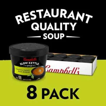 Show moreIndulge in the exquisite taste of Campbell's Slow Kettle Style Tomato & Sweet Basil Bisque. Each bowl is a culinary masterpiece, blending the rich, tangy flavors of tomatoes, creamy texture, and a hint of aromatic basil, creating a warm and inviting experience. Perfect for those seeking a delicious vegetarian option, this tomato bisque is made without high fructose corn syrup or artificial colors, ensuring that every spoonful is not only flavorful but also wholesome.