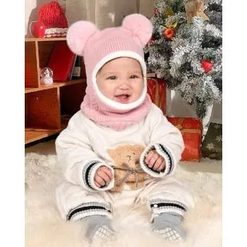 Camptrace Baby Toddler Winter Hat Scarf Set Pom Girls Boys Kids with Fleece Lined Beanie Snow Hat Hood 1-4T
