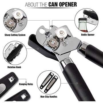 With an ultra-sharp cutting edge, this tin can opener features a robust electroplated cutting disc that slices through metal with ease. The innovative tooth on wheels grips the can lid with precision, ensuring a clean and smooth opening every time. Plus, its rust-proof body guarantees longevity, making it the best manual can opener available!