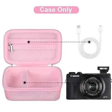 Canboc Hard Case for Canon PowerShot G7X Mark II/III / G5 X Mark II Digital Camera, Mesh Bag fit Battery, Charger, USB Cable, Pink