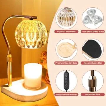 Candle Warmer Electric Wax Lamp - Candle Melt Lamp with Timer Dimmable Table Lamp Adjust Height for Jar Candles House Warming Gifts Home Bedroom Decor Candle Light with 3 Bulbs (Amber shade 01)