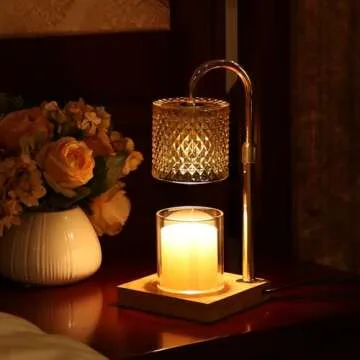 Candle Warmer Lamp, Candle Lamp Wax Warmer, Timer & Dimmer 7-Levels, Fits Cup Jar Candle, Candle Top Melting, Crystal Candle Heater Lamp for Scented Wax, Elegant Home Decor, Brass Glass