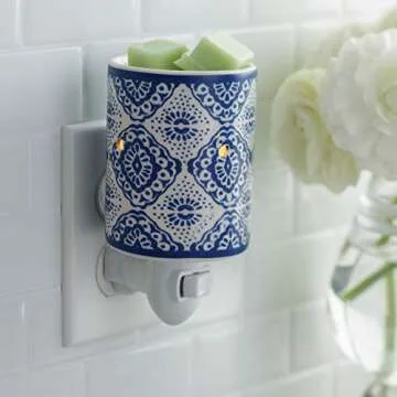 CANDLE WARMERS ETC Pluggable Fragrance Warmer- Decorative Plug-in for Warming Scented Candle Wax Melts and Tarts or Fragrance Oils, Indigo Blue and White Porcelain