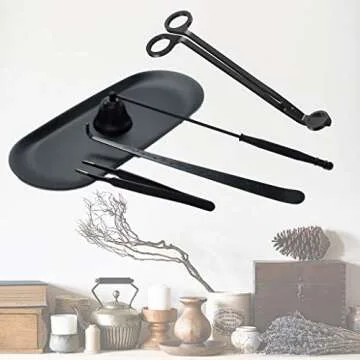 Candle Wick Trimmer, Candle Accessories Set 6 in 1 - Candle Snuffer, Wick Trimmer, Wick Dipper, Tweezers, Storage Bag and Plate Tray