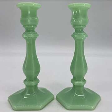 Candlestick Holders Set of 2 - Paneled - Mosser Glass USA (Jade)