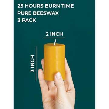Illuminate your space with CANDWAX Pure Beeswax Pillar Candles, a delightful set of handmade candles that not only enhances your home decor, but also promotes a healthier environment. Each candle in this set measures 1.8x3 inches, offering a warm, inviting glow that is as beneficial as it is beautiful. Crafted from 100% natural beeswax, these candles are entirely free from harmful paraffin or chemicals, ensuring a safe ambiance for you and your loved ones. With an impressive burn time of...