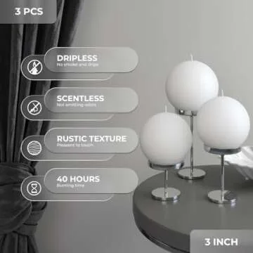 CANDWAX Set of 3 Round Candles Ball 3 inch - Snowball Candles Perfect as Wedding Decorations and as Spherical Candles for Home Decor - Unscented Candles Long Burning - White Candles