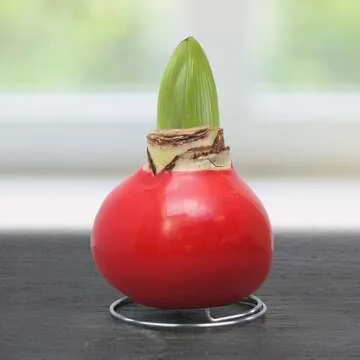 Candy Cane Amoice Waxed Amaryllis Flower Bulb with Stand, No Water Needed