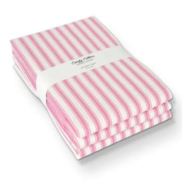 Candy Cottons Stripe Kitchen Towels Decor Hanging Loop Dish Towels Boho Stripe Absorbent Festive Gift Set of 3 Pantry Reusable 18x28 Inch Kitchen Dish Towels|Trendy Spring French Stripe| Pink