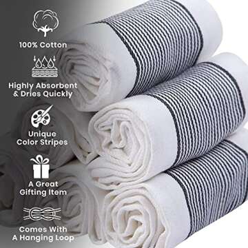 Candy Cottons Stripe Kitchen Towels Decor Hanging Loop Tea Dish Towels Boho Stripe Absorbent Festive Gift Set of 6 Pantry Kitchen Reversible 18x28 in Dish Towels|Spring Vintage Farmhouse Style| Black