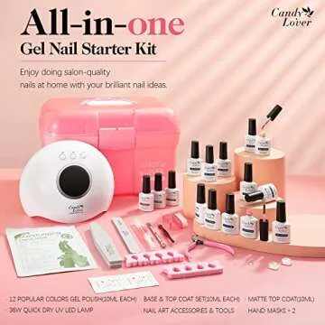Candy Lover Gel Nail Polish Kit with 36W UV Light Nail Lamp, 12 Colors Gel Polish with Base Top Coat Matte Top UV LED Nail Gel Polish Set, Nail Art Accessories Free Storage Box Starter Nail Kit