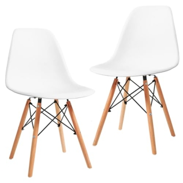 Show moreIntroducing the CangLong Modern Mid-Century Dining Chair, a striking blend of aesthetics and comfort ideal for any contemporary space. This set of two chairs transforms your dining room, kitchen, or living room into a stylish haven with its sleek, ergonomic design that not only looks great but also prioritizes your comfort. Crafted from high-quality, durable plastic with natural wooden legs, these chairs maintain stability while boasting an elegant silhouette that reflects a true mid-century modern aesthetic. The smooth contours of the chair are designed to promote proper posture, making them an excellent addition for long gatherings or intimate dinners.