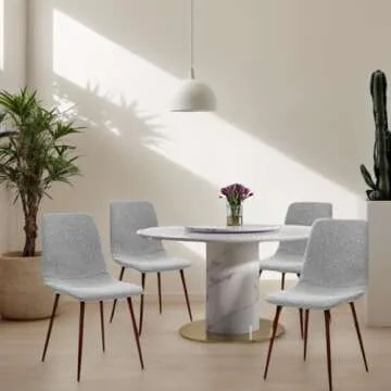 CangLong Set of 4 Modern Upholstered Dining Chairs with Metal Legs, Grey