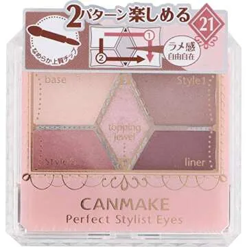 CANMAKE Perfect Stylist Eyes - 21 Strawberry Milk Mocha, Lightweight & Moisturizing Eye Makeup