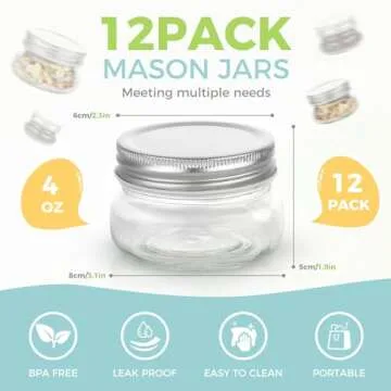 Show more Introducing the ultimate solution for storage and creativity – our meticulously crafted set of mini Mason jars! Fashioned from premium food-grade glass, these jars shine with durability and safety, allowing you to store your culinary creations without worry. Each jar features a robust metal lid designed to provide a stellar airtight seal, ensuring that your favorite jams, jellies, and DIY concoctions are kept fresh and preserved. It's essential to dry the lid promptly after using it to maintain its integrity.