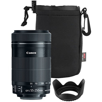 Canon EF-S 55-250mm F4-5.6 IS Mark II Lens + Tulip Hood + Neoprene Pouch Bundle